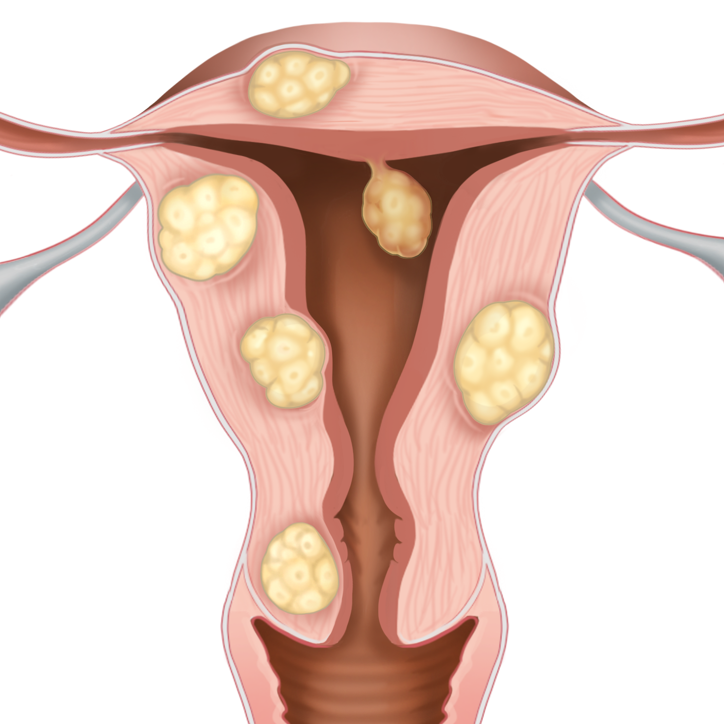 자궁근종의 크기는 완두콩만큼 작은 것부터 15cm 이상까지 다양합니다. 자궁근종의 약 90%는 자궁 본체에, 10%는 자궁경부에 위치합니다. 자궁 근종은 자궁암 발병과 관련이 없으며 일반적으로 암으로 진행되지 않습니다.